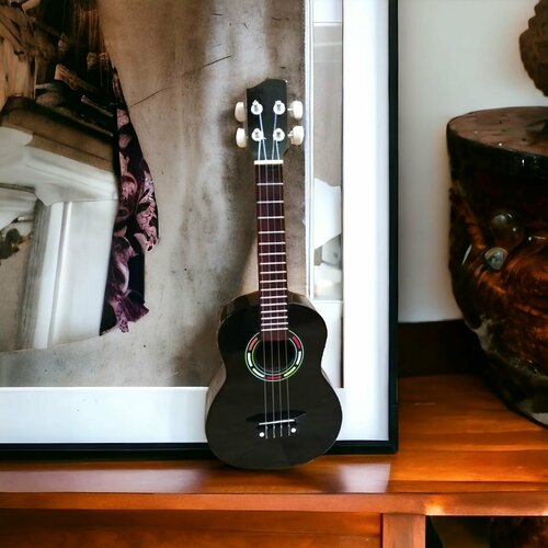 Гитара Укулеле гавайская миниатюрная четырехструнная сопрано Индонезия 58 см черная