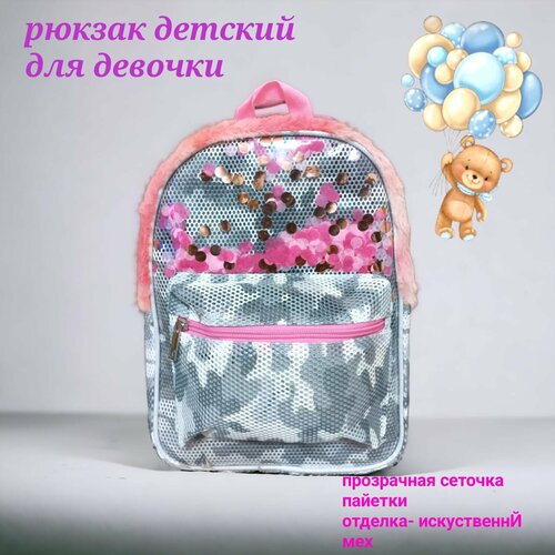 Рюкзак детский для малышей дошкольный в садик с блестками серо-розовый для девочек 32х23 см подарок внутри