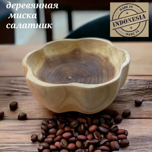 Миска из дерева для ягод и снеков салатница массив тикового дерева Индонезия 26 см