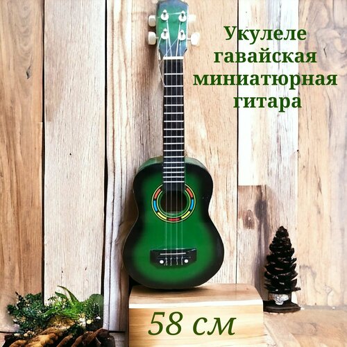 Гитара Укулеле гавайская миниатюрная 58 см зеленая