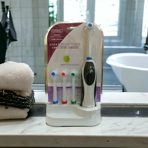 Электрическая зубная щетка VITTOVAR с 4 насадками на подставке, черно-белая