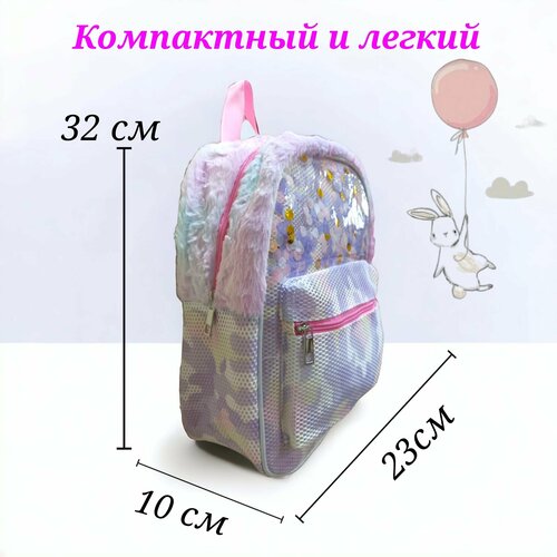 Рюкзак детский для малышей дошкольный в садик с блестками сиреневый для девочек 32х23 см подарок внутри