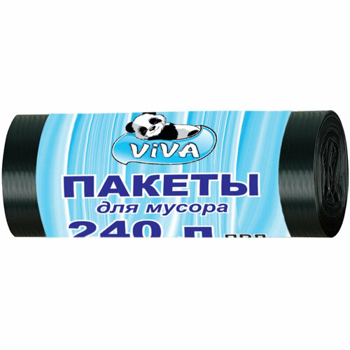 Мешки для мусора ПВД 240л 45мкм 10шт/рул черные 80х140см Viva 1 шт
