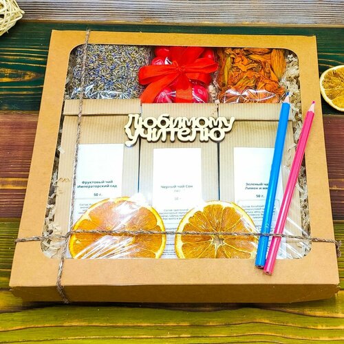 Подарочный набор учителю Чай для учителя №1: 3 вида чая и сладости