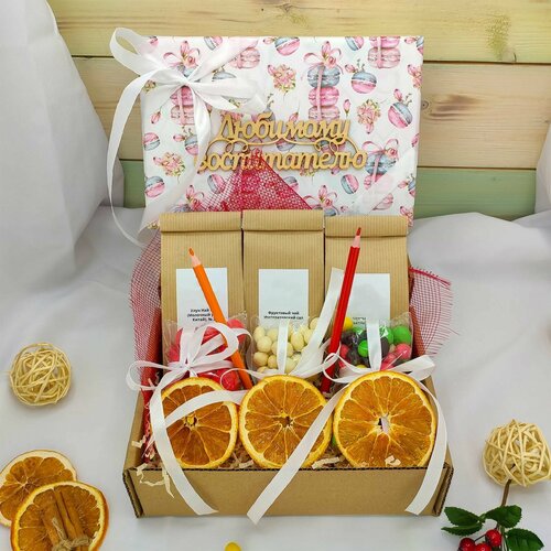 Подарочный набор воспитателю Чай для воспитателя №1: 3 вида чая и сладости