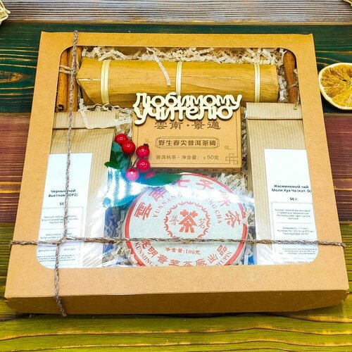 Подарочный набор воспитателю Мини Пуэры: 2 вида чая и сладости