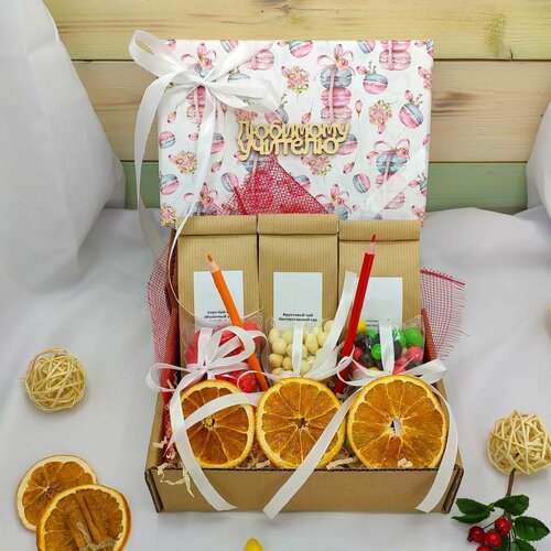 Подарочный набор учителю Волшебных моментов: 2 вида чая и сладости