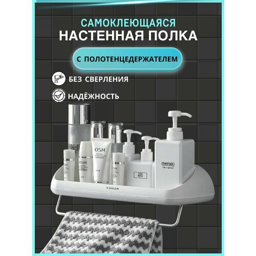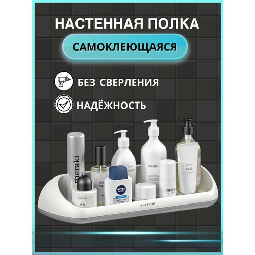 Полка настенная для ванной комнаты без сверления для шампуней, гелей, бальзамов, кремов