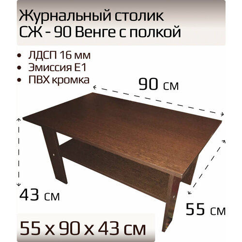 Журнальный стол №90 Венге 55 х 90 х 43 см с полкой