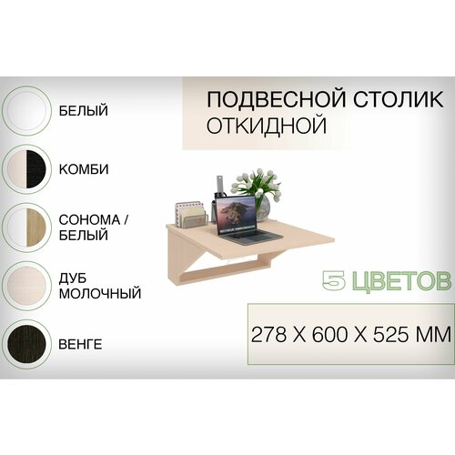 Подвесной стол книжка откидной СО1 (Дуб молочный), 60х52.5х27.8 см