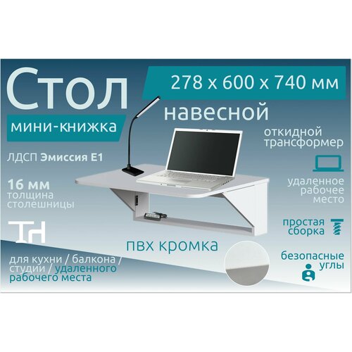 Подвесной стол книжка откидной СО-4* безопасные углы с полкой Белый 278(525)х740х152(600)