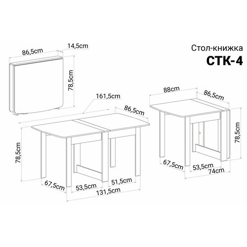 Стол-книжка СТК4(СК-1) 160-14 x 87 x 78 см, цвет Дуб Молочный