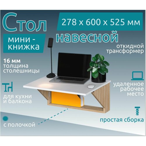 Подвесной стол книжка откидной СО1 (Дуб сонома/Белый), 60х52.5х27.8 см