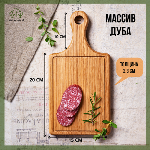 Разделочная доска из дуба с ручкой Volga Wood. 15*30 см.