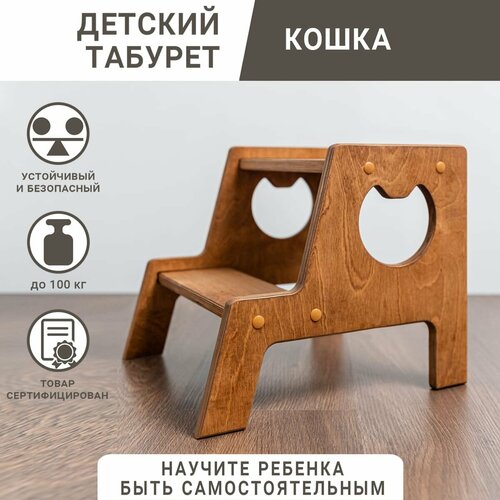 Детский деревянный табурет Кошка, цвет светло-коричневый