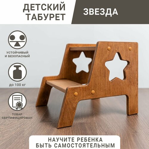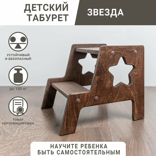 Детский деревянный табурет Звезда, цвет темно-коричневый
