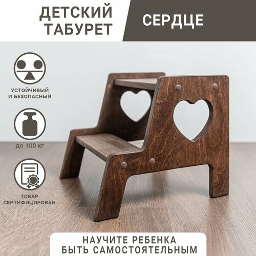 Детский деревянный табурет Сердце, цвет темно-коричневый