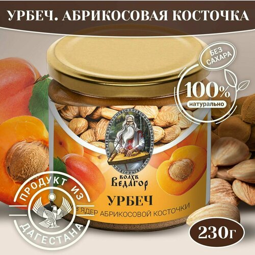 Урбеч из ядер абрикосовых косточек, 230 гр, натуральная паста из ядер абрикоса, ореховая паста без сахара и добавок.