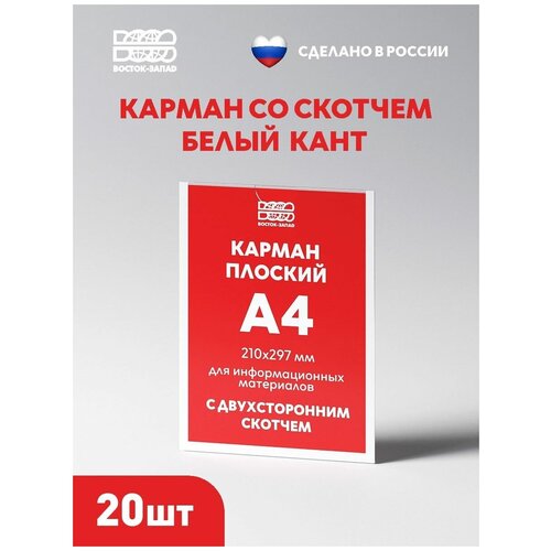 Карман А4 с белым скотчем, 20 шт.