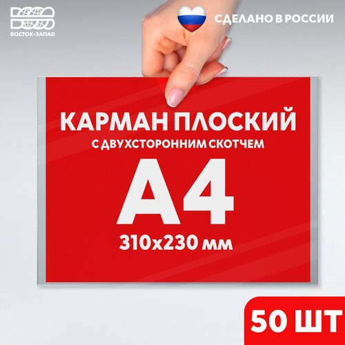 Карман А4 с белым скотчем 50 шт горизонтальный