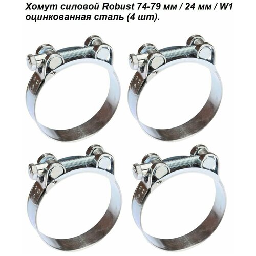 Хомут силовой Robust 74-79 мм / 24 мм / W1 оцинкованная сталь (4 шт).