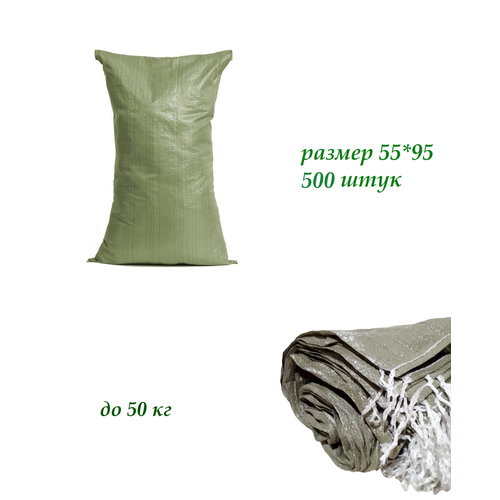 Мешки для строительного мусора 55*95 см, полипропиленовые, зеленые 55*95 см - 500 штук