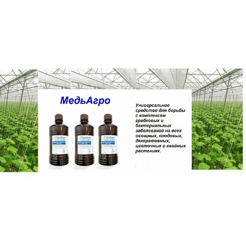 МедьАгро мощный контактный препарат от грибковых и бактериальных заболеваний растений для садов и овощей 1500 мл.(3 шт по 500 мл)
