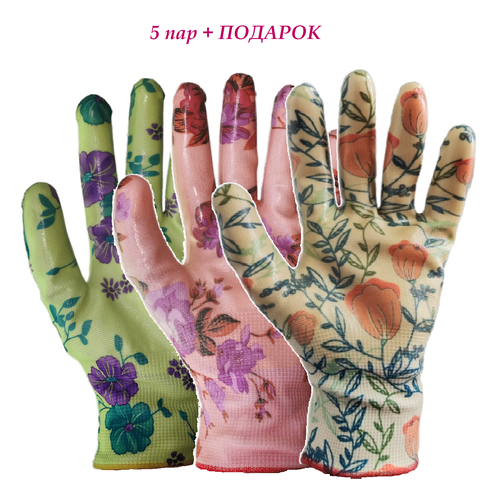 Перчатки садовые нейлоновые с нитриловым покрытием - 5 пар