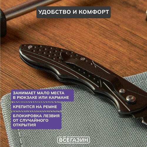 Нож туристический складной, всёгазин 16см, нерж. сталь, алюминий