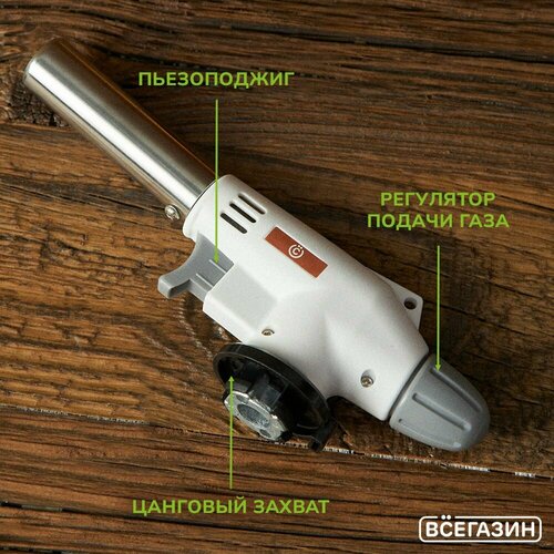 Горелка газовая, всёгазин, с пьезоподжигом, цанговый захват, 17,5х4х6,2см, сопло 19мм
