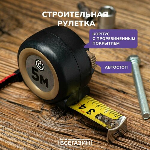 Рулетка с обрезиненным корпусом, всёгазин 5мх25мм