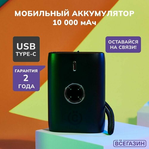 Аккумулятор мобильный всёгазин, 10000 мАч, USB + Type-C, Быстрая зарядка QC3.0+PD, 3А, Чёрный