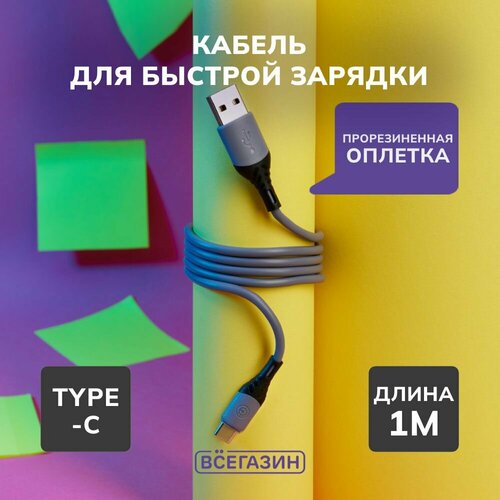 Кабель для зарядки XXL Type-C всёгазин, 2м, Быстрая зарядка QC3.0