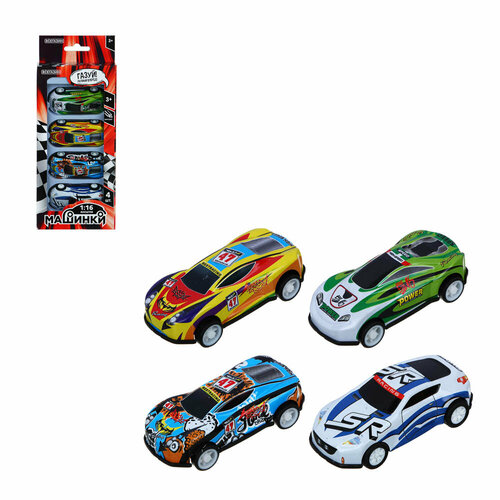 Набор маленьких инерционных машинок, ABS, металл, 4 штуки