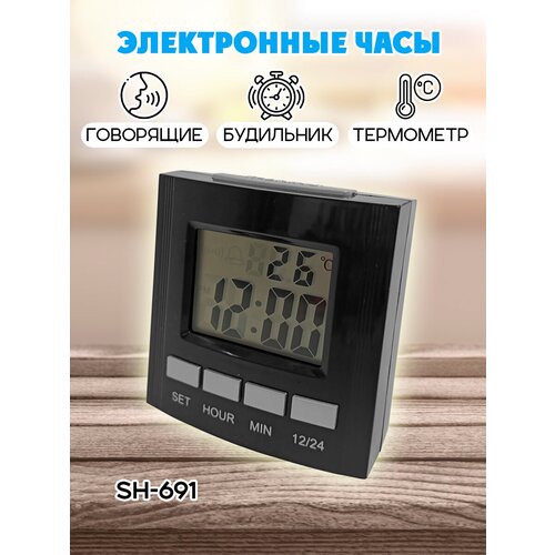 Часы говорящие настольные, SH-691, цвет - зеленая подсветка