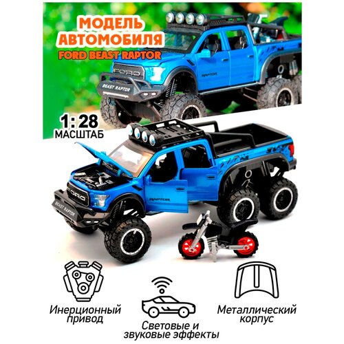 Машинка игрушечная коллекционная "Beast Raptor", Вся-Чина. Ford, синего цвета, масштаб 1:28