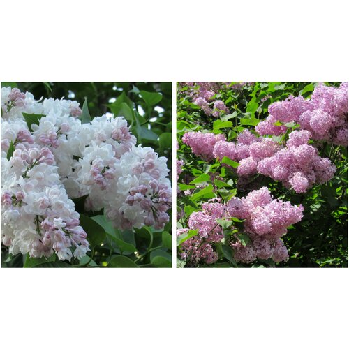 Сирень обыкновенная Красавица Москвы (Krasavitsa Moskvy), сирень гиацинтовая Бюффон (Buffon), набор из двух саженцев, ЗКС, С3, 40-60см
