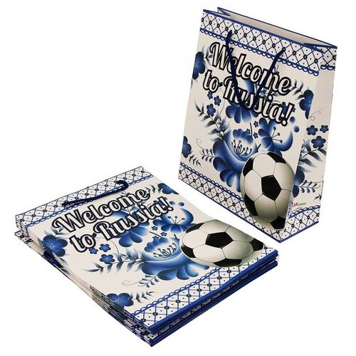 Подарочный пакет под гжель "Welcome to Russia!"/ размер 32 х 26 см, 12 шт