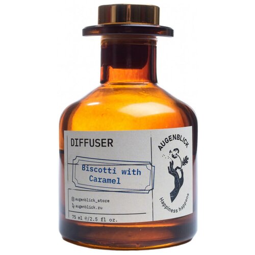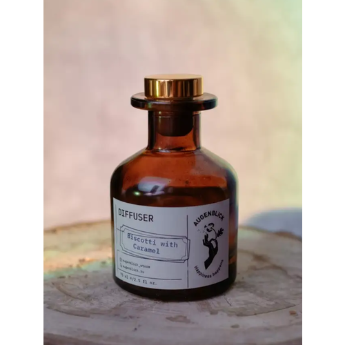 Ароматический диффузор аромадиффузор с ротанговыми палочками освежитель для дома и офиса Augenblick Biscotti with Caramel, 75 мл