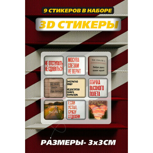 3D наклейки - стикеры / Набор объёмных наклеек 9 шт. с фразами и цитатами " Мотивация поддержка "