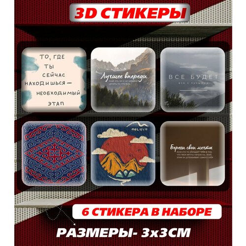 3D наклейка на телефон, Набор объемных мотивационных наклеек с фразами и цитатами - Мотивация и поддержка, верить в себя, звезды и пейзажи