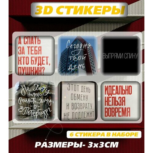 3D наклейка на телефон, Набор объемных мотивационных наклеек с фразами и цитатами - Мотивация и поддержка, твой день и хочу в Питер