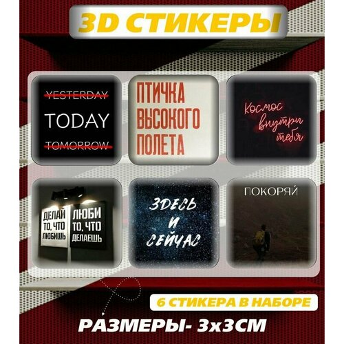 3D наклейка на телефон, Набор объемных наклеек с надписями - мотивация, фразы и цитаты Здесь и сейчас