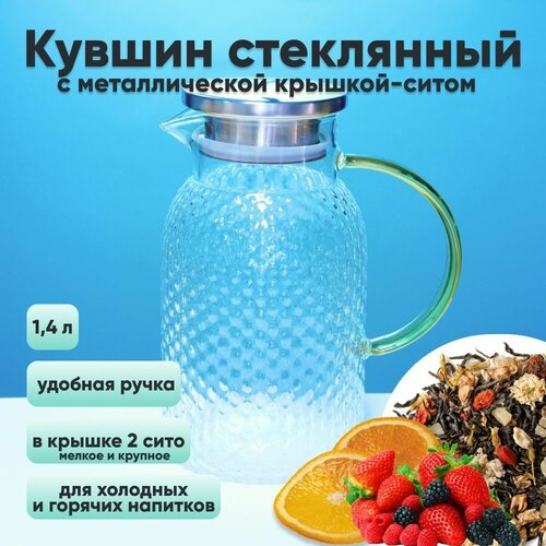 Кувшин стекло с металлической крышкой-ситом, 1400 мл, желтая ручка.