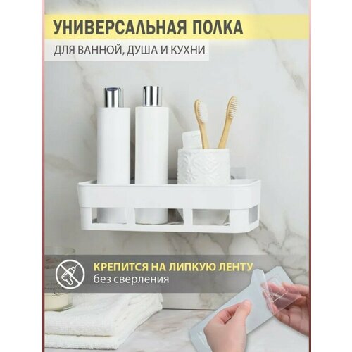 Полка для ванной комнаты / полка подвесная для ванной без сверления, на присосках, белая