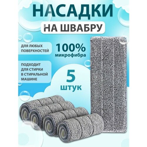 Универсальная насадка для швабры из микрофибры 5 штук / Тряпка для плоской швабры 5 штук