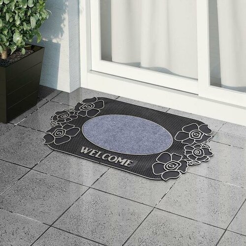 Коврик придверный Доляна Welcome цветы, серый