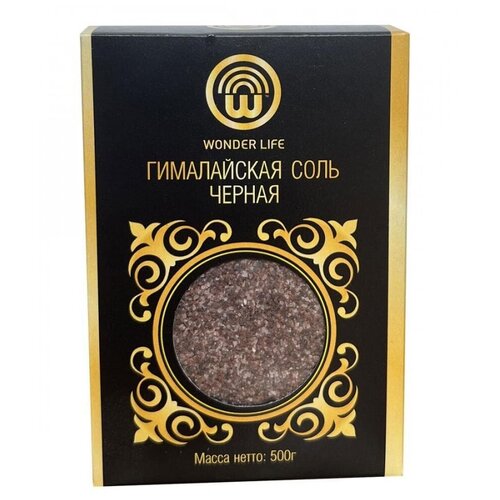 Пищевая черная Гималайская соль 500 г. (помол 0,5-1 мм) в цвет. коробке