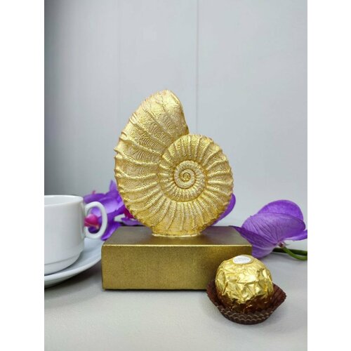 Статуэтка интерьерная раковина в декоре "Золото Дукат", фигурка декоративная для дома и офиса. Выс. 14 см.