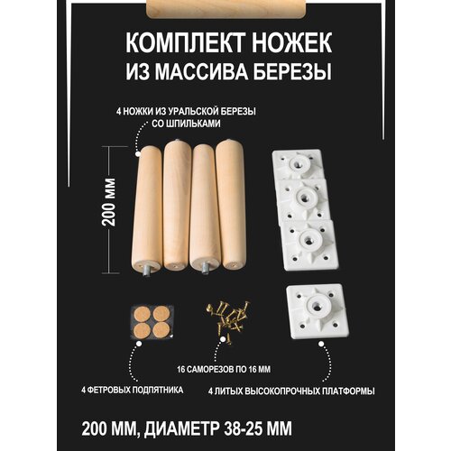 Мебельные деревянные ножки 4 шт, 25 см, ножки для мебели, берёза, белая опора, WOODGRI
